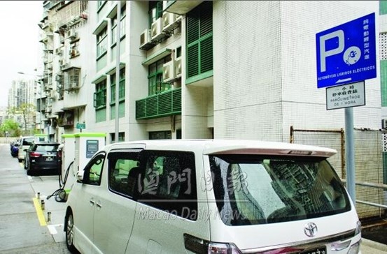 繼林茂塘安裝路邊充電設施後,於新雅馬路、栢林街、沙梨頭海邊大馬路、氹仔海洋大馬路及廣東大馬路多處路邊泊位均安裝電動車充電設施,每處各提供四個純電動輕型汽車咪表泊車位,並於今日起正式投入服務。交通局提醒,上述泊車位是1小時咪表泊車位,只允許純電動輕型汽車作充電停泊之用,當局會密切留意有關泊車位的運作情況,適時調整及優化。